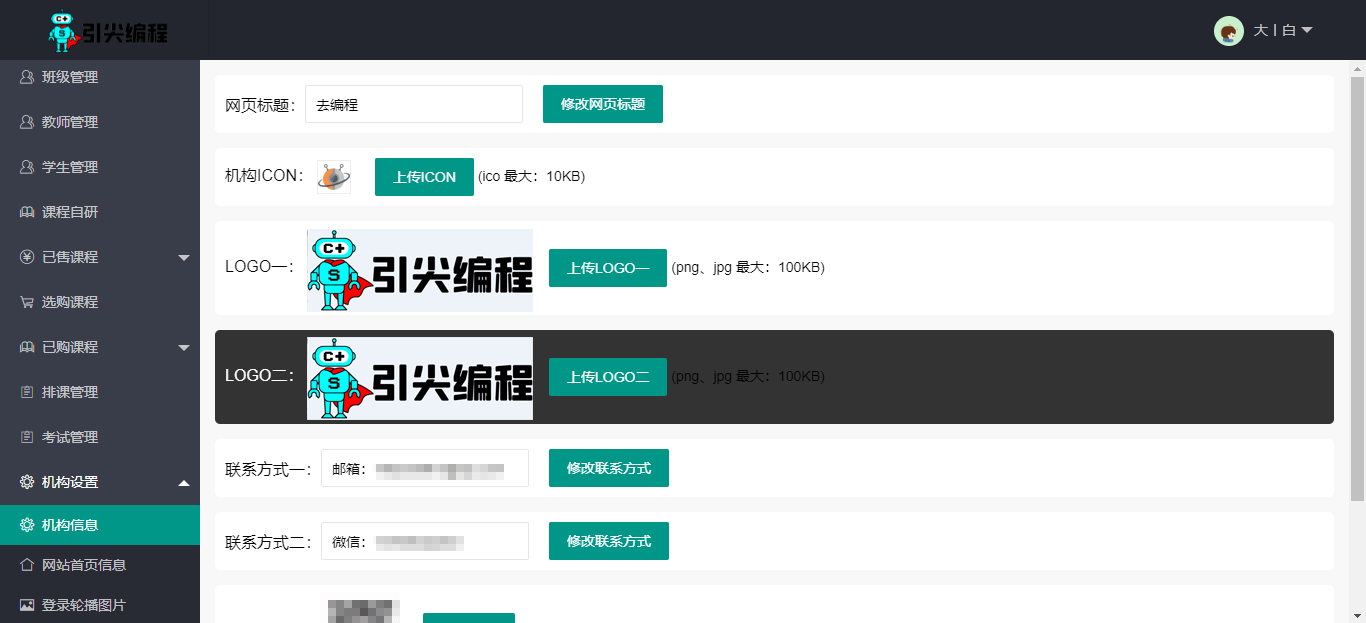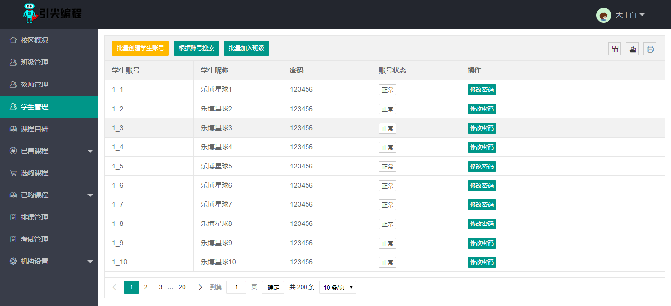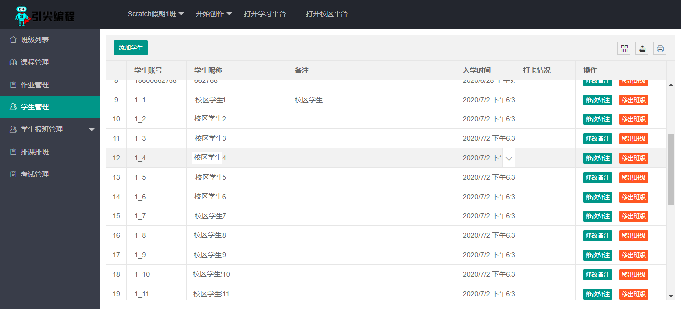 学生版(免费):全系学习工具使用、作品管理与分享、学习与考级竞赛教师版(免费):班级、课时发布、学生、作业管理、考试竞赛校园版(免费):学生上限:1000;自研课程、课程选购、班级创建及管理、招生、授课企业版(定制):学生上限:3000;平台课程外售:10个;平台招生班级:10个;企业专有UI; 另:限时免费送120节课程(Scratch、Python、C/C++、机器人、AI课程、考试竞赛任选);旗舰版(独享):整站克隆、界面定制、功能定制、专有域名、独立服务器;(可含源代码)---合作共赢,欢迎您加入少儿编程_少儿编程普惠平台一起创造未来---